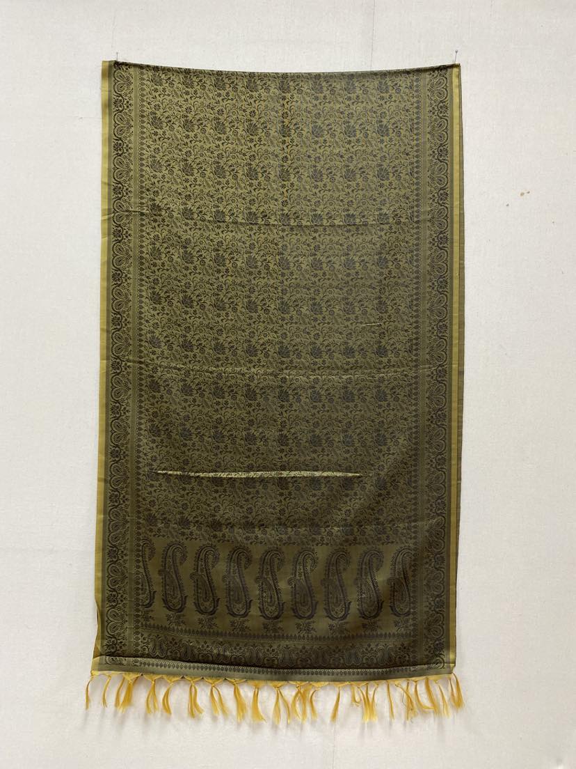 ทอจากไหมสังเคราะห์อินเดีย มีลักษณะเป็นรูปทรงสี่เหลี่ยมผืนผ้า เนื้อผ้ามี ลักษณะนุ่ม ลื่น ยืดหยุ่นเล็กน้อย มีลวดลายพรรณพฤกษาทั่วทั้งผืน